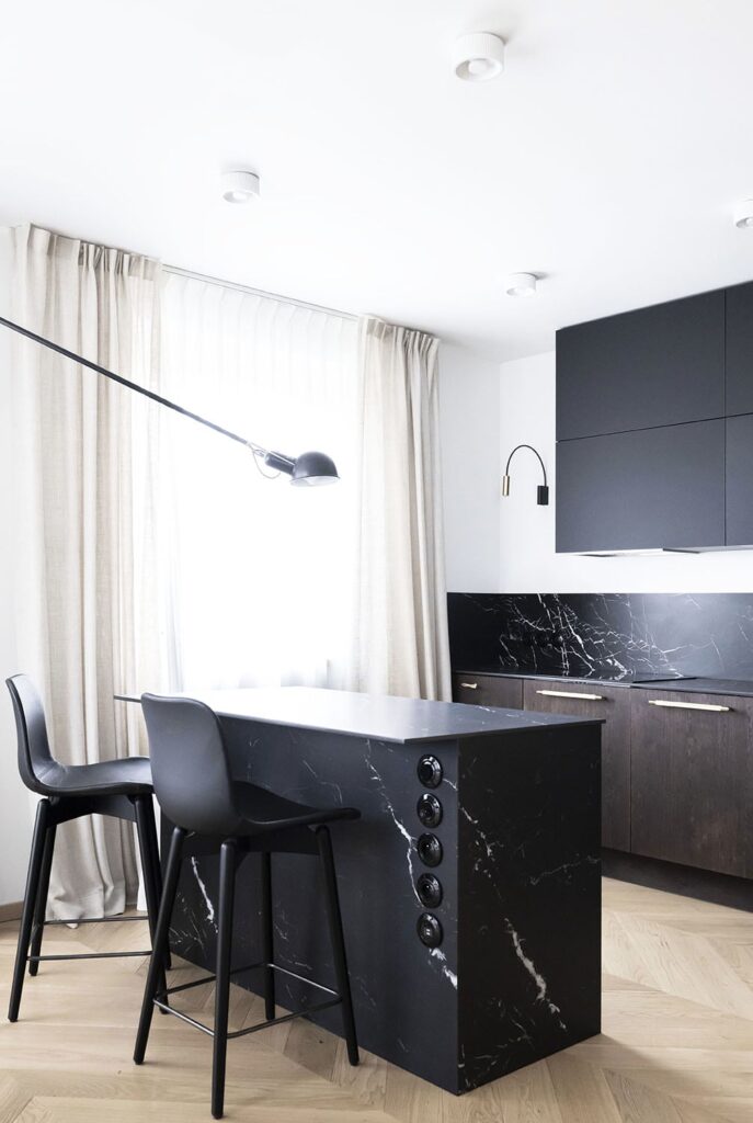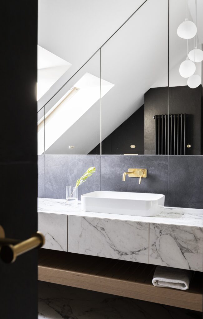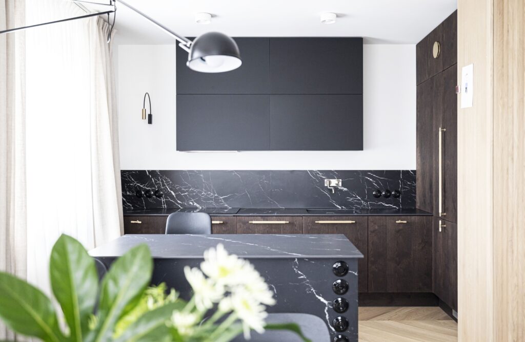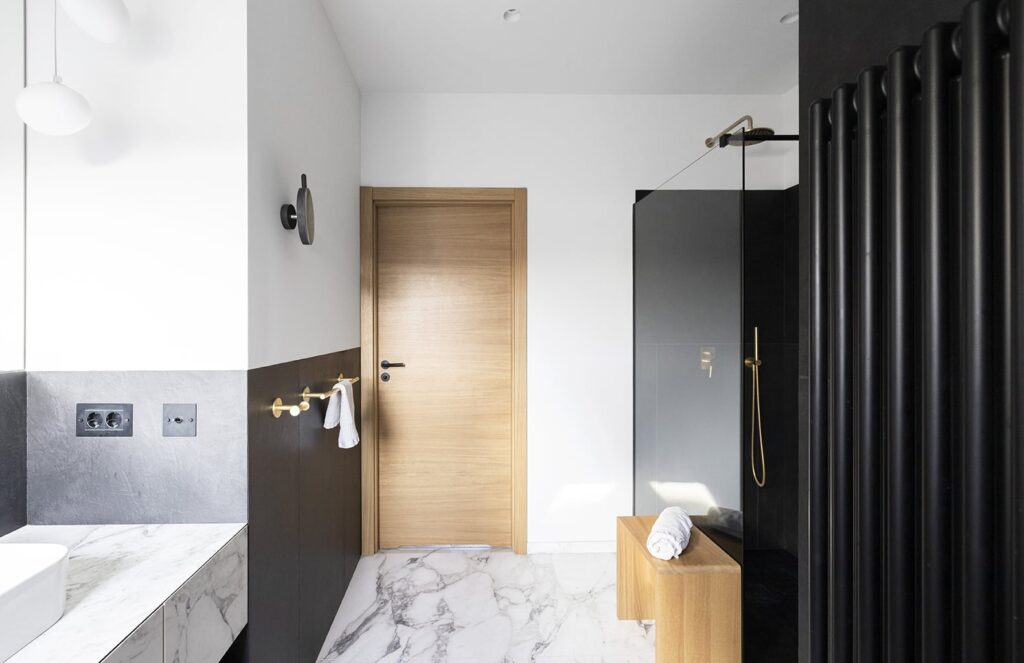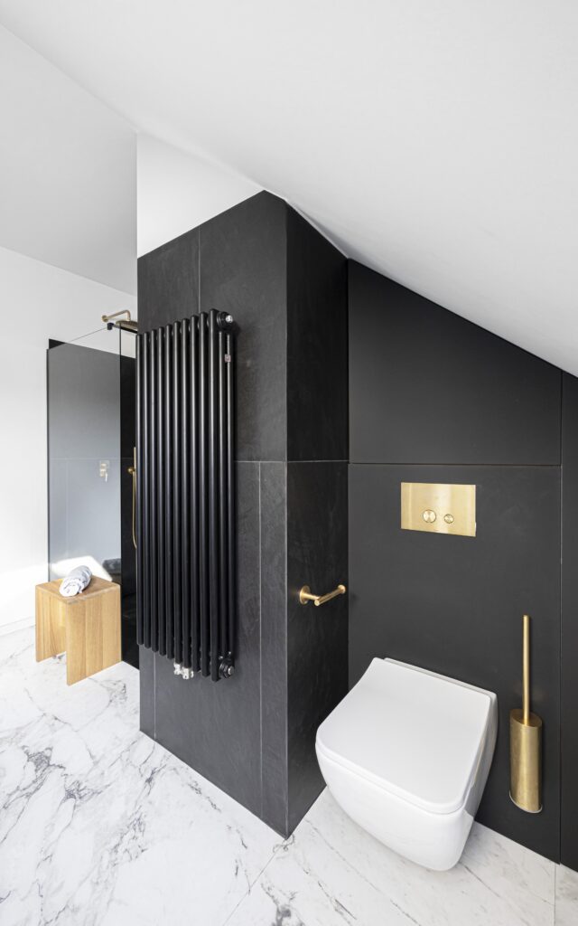 Na piętrze wykonaliśmy także remont dwóch sypialni oraz łazienki. To mieszkanie miało być zaprojektowane w męskim stylu. Stawialiśmy na dobrej jakości materiały i ciekawe wzornictwo.